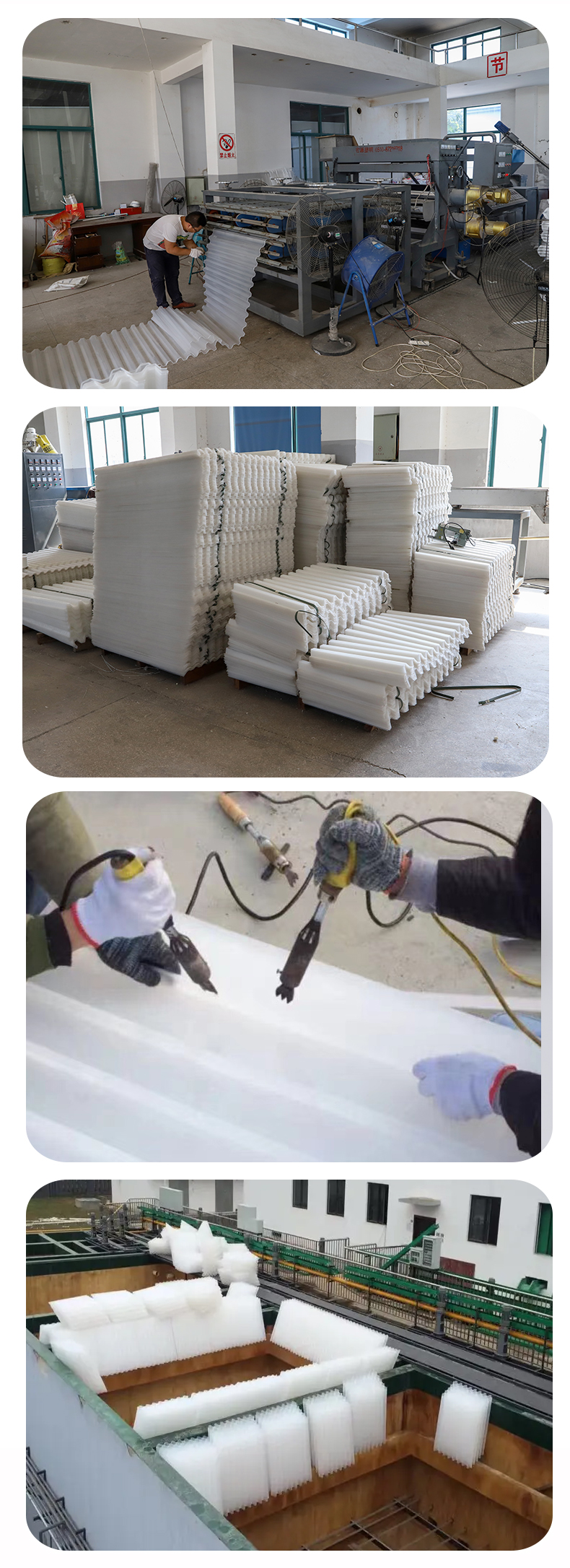斜管和斜板材質都一樣有聚丙烯、乙丙共聚、聚氯乙烯三種。主要用于各種沉淀和除砂作用。是目前在給水排水工程中采用廣泛而且成熟的一項水處理裝置。它適用范圍廣、處理效果高、占地面積小等優點。適用進水口除砂一般工業和生活給水沉淀,污水沉淀,隔油以及尾礦濃縮等處理,即適用于新建工程又適用于現有舊池的改造,均能取得良好的經濟效益。