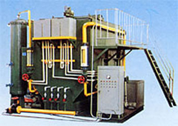本設備的工作方法屬于加壓溶氣氣浮法,其工作原理:在一定條件下,將大量的空氣溶于水,形成溶氣水,作為工作介質,通過釋放驟然減壓,快速釋放,產生大量的微細氣泡,粘附于經過混凝反應后的廢水中的"礬花"上,使絮體上浮進行清除。