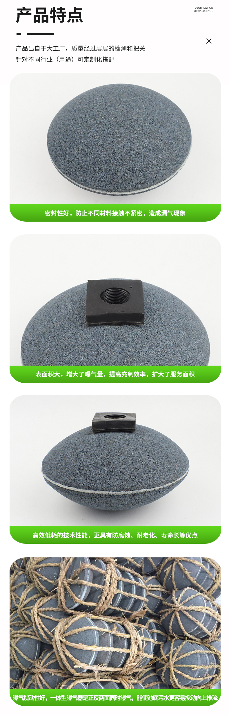 陶瓷剛玉曝氣器是以棕剛玉沙為主要原料,經壓制成型、高溫燒結的一種鐘罩型高效節能空氣擴散裝置,該類型曝氣器硬度更大,化學性能十分穩定,可適用于各種生活污水和工業廢水生化處理、水產養殖等增氧系統。分全剛玉和半剛玉兩個類型。它與其它類型曝氣器相比,運行穩定、耐老化、防腐蝕、適用于連續曝氣池運行等特點給該產品營造了較為理想的市場空間。